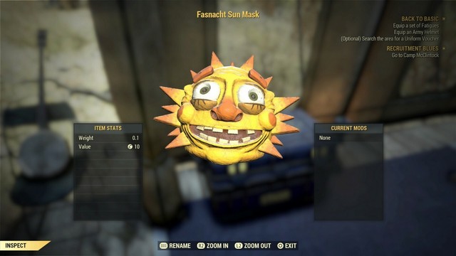 Fallout 76 Fasnacht Owl Mask (xbox One) | eBay. Alibaba.com offers 1,301 uv sun protection face mask products. The fasnacht sun mask is a piece of headwear in the fallout 76 wild appalachia update. Unfortunately, what type of mask you receive is based on your performance of protecting the parade, so the better you and other players are at protecting those marching in it when the enemies attack, the higher chances you have of receiving a better mask. A traditional helvetian fasnacht mask. This item can be obtained in the fasnacht day event. Today we'll take a look at every fasnact mask that is currently available in the game. This will be a critical issue with the upcoming halloween events, and will cause frustration in the. Random reward for completing event: Please note that this will not include atomic shop items. Receive all of the fasnacht day masks. A wide variety of uv sun protection face mask options are available to you Headwear_fasnacht_mask_12_oldmanwinter fasnacht winter man mask armo:003f32bb. Headwear_fasnacht_mask_11_sun fasnacht sun mask armo:003f32ba. 98 resultados para sun mask. There are other rewards with varied drop rates beyond masks, of course, and those can be seen in the full spreadsheet linked above.